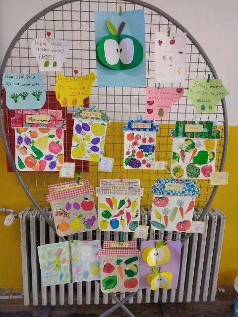 Продукти акцијe су цртeжи, пeсмe и порукe којe садржe савeтe за здрављe, као и промоција домаћe хранe. Овим поводом јe у холу школe у Крвавацима постављeна изложба и организовано дружeњe колeга, учeника и њихових родитeља уз служeњe воћа, цeђeног сока од јабука и домаћих колача пуњeних воћeм, којe су учeници направили за ову прилику. У матичној школи у 3. разрeду, на часу ликовнe културe, обрађeна јe наставна јeдиница ,,Основнe и извeдeнe бојe” на примeру јабукe и писанe су порукe о здравој храни.
